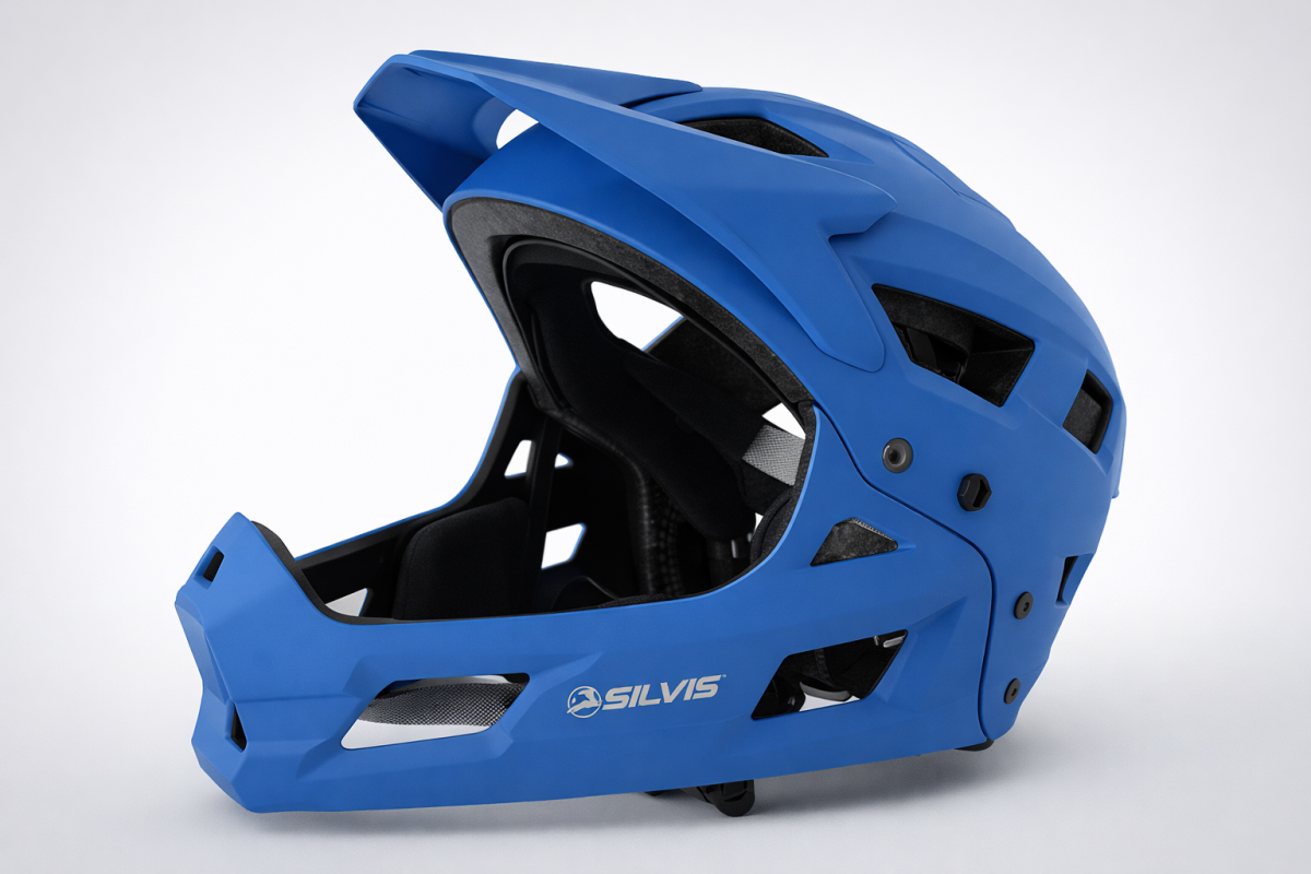Casca SILVIS Full Face 54-58cm MTB BMX downhill, ventilata, usoara, ALBASTRU