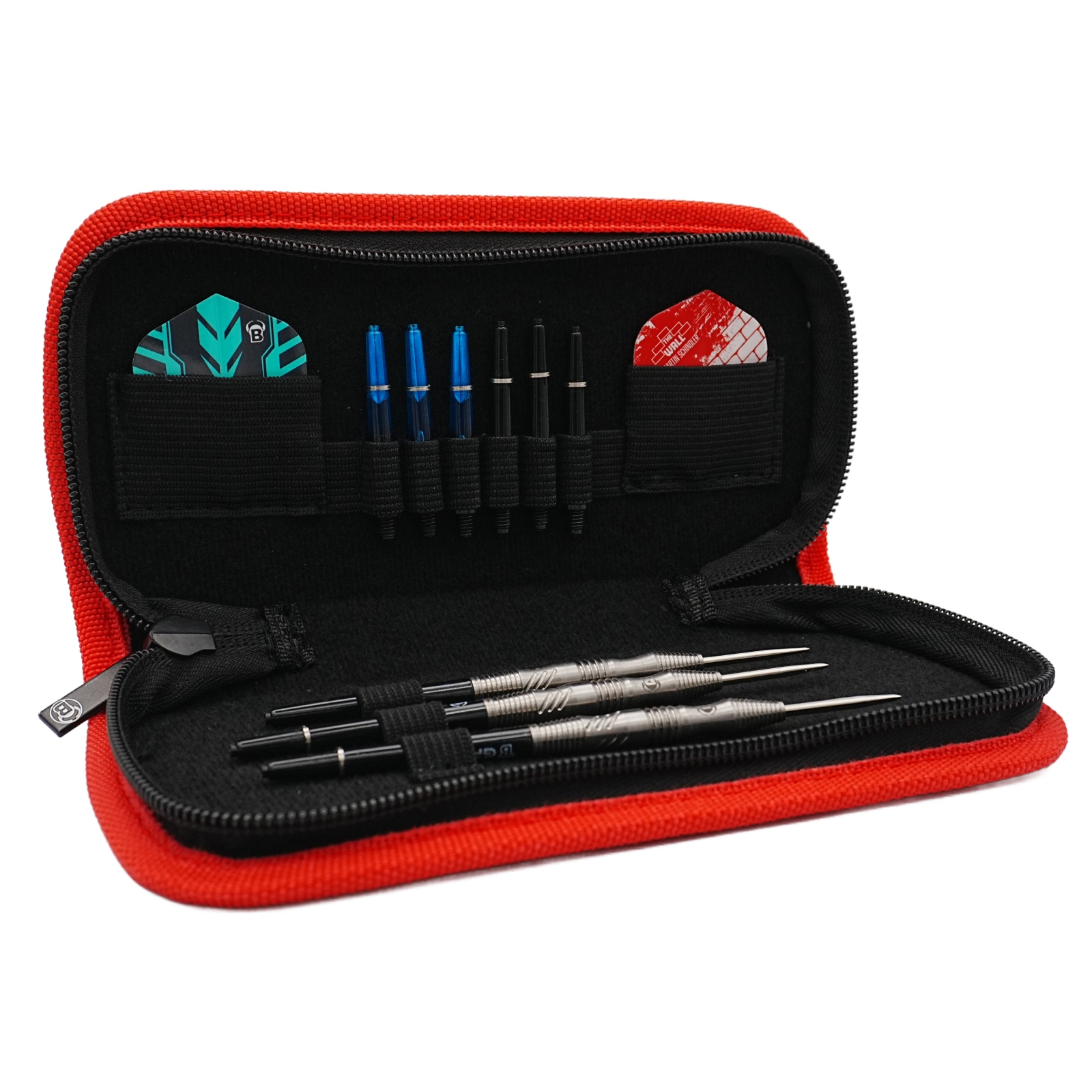 Etuiul pentru săgeți BULL'S Fleks în culoare roșu-negru oferă protecție optimă pentru echipamentul tău de darts, cu design texturat rezistent și fermoar sigur. Compact și ușor de transportat datorită carabinei incluse, acest etui BULL'S combină durabilitatea materialelor de calitate cu un stil modern, ideal pentru jucătorii pasionați.