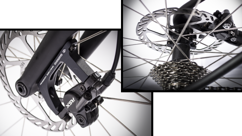 Bicicleta este construita dintr-un cadru de carbon usor si durabil, cu dimensiunile de 360/400. Furca este un model Rockshox Recon Silver Air, cu o cursa de 100mm pentru a absorbi impacturile in timpul off-road-ului. Franele sunt hidraulice si sunt Shimano MT500 cu discuri de 160mm pentru o franare eficienta si sigura.