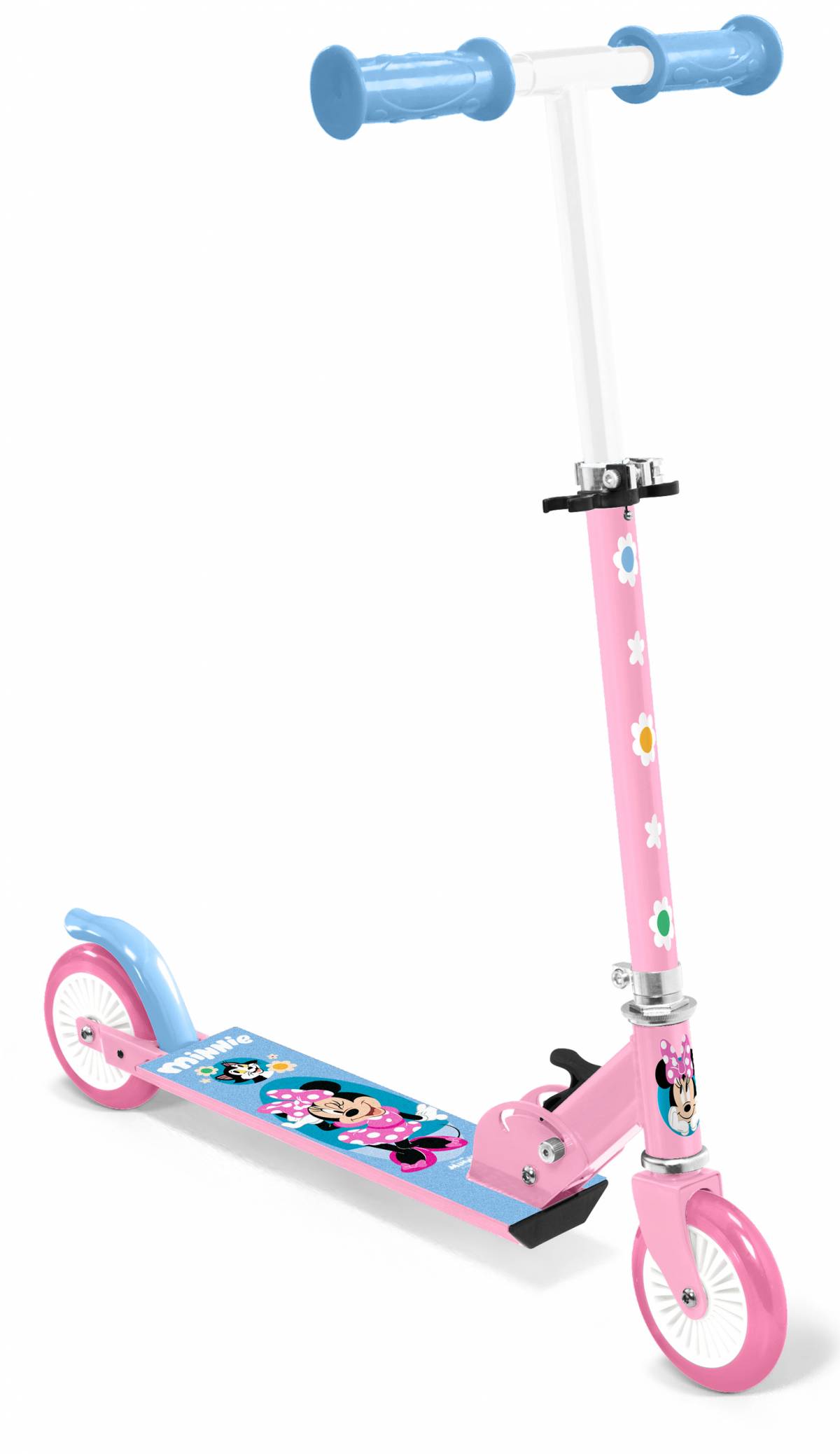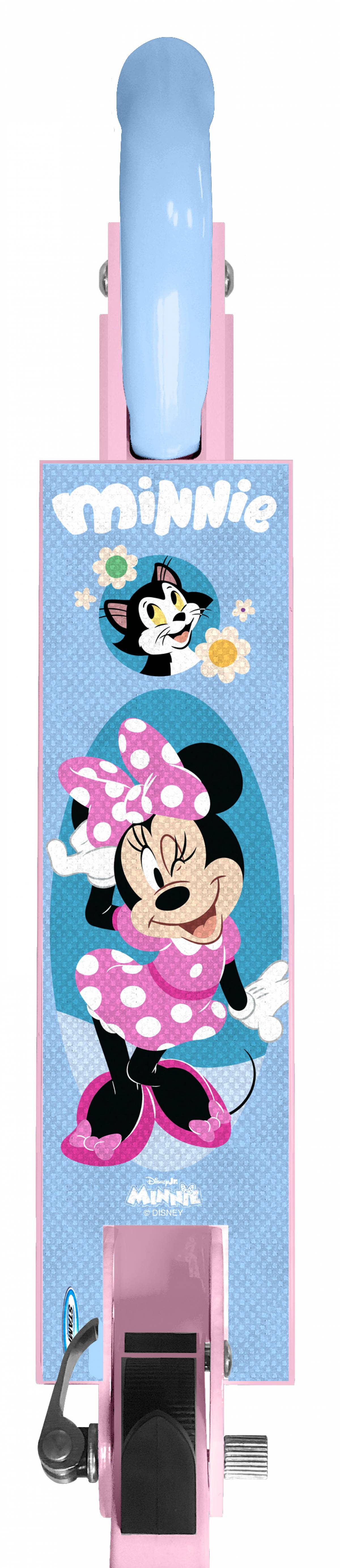 Descriere Trotineta pliabila Minnie Mouse pentru copii. Caracteristici: mecanism sigur de pliere frana spate platforma aluminiu antiderapanta ghidon reglabil